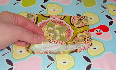 7-Line up side and bottom seam. Sew across at 1/4" to form corner..or flat bottom for purse.